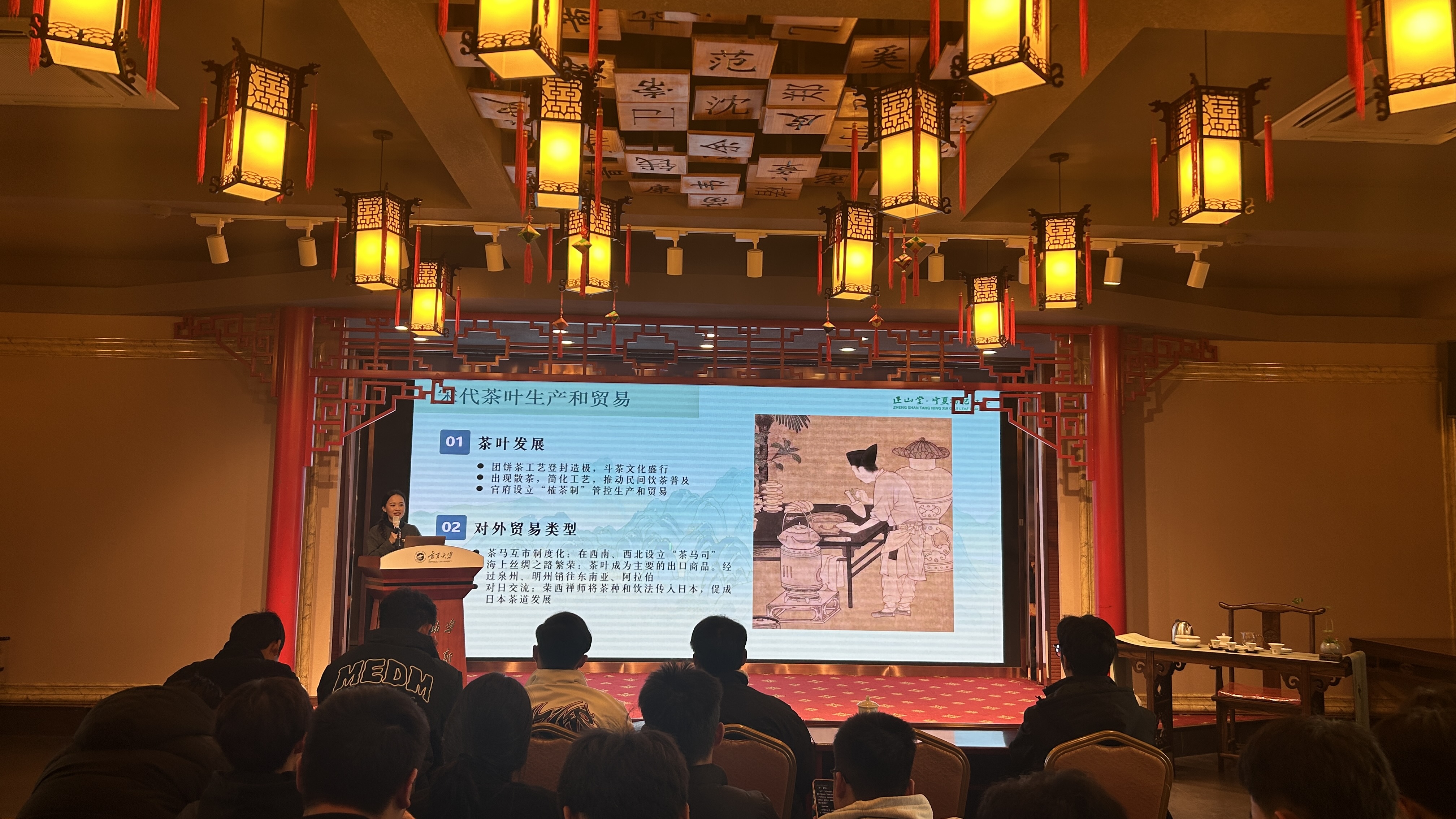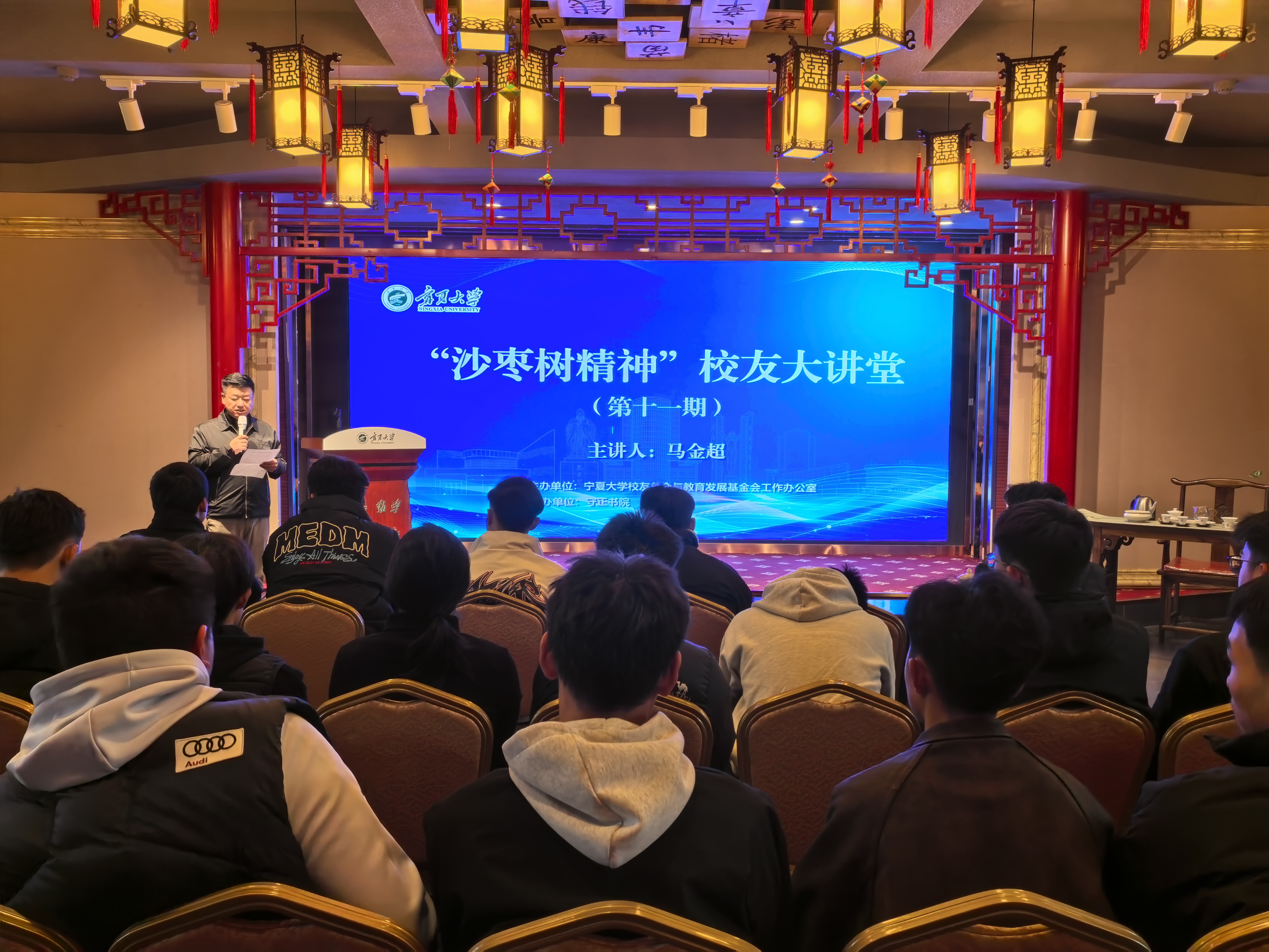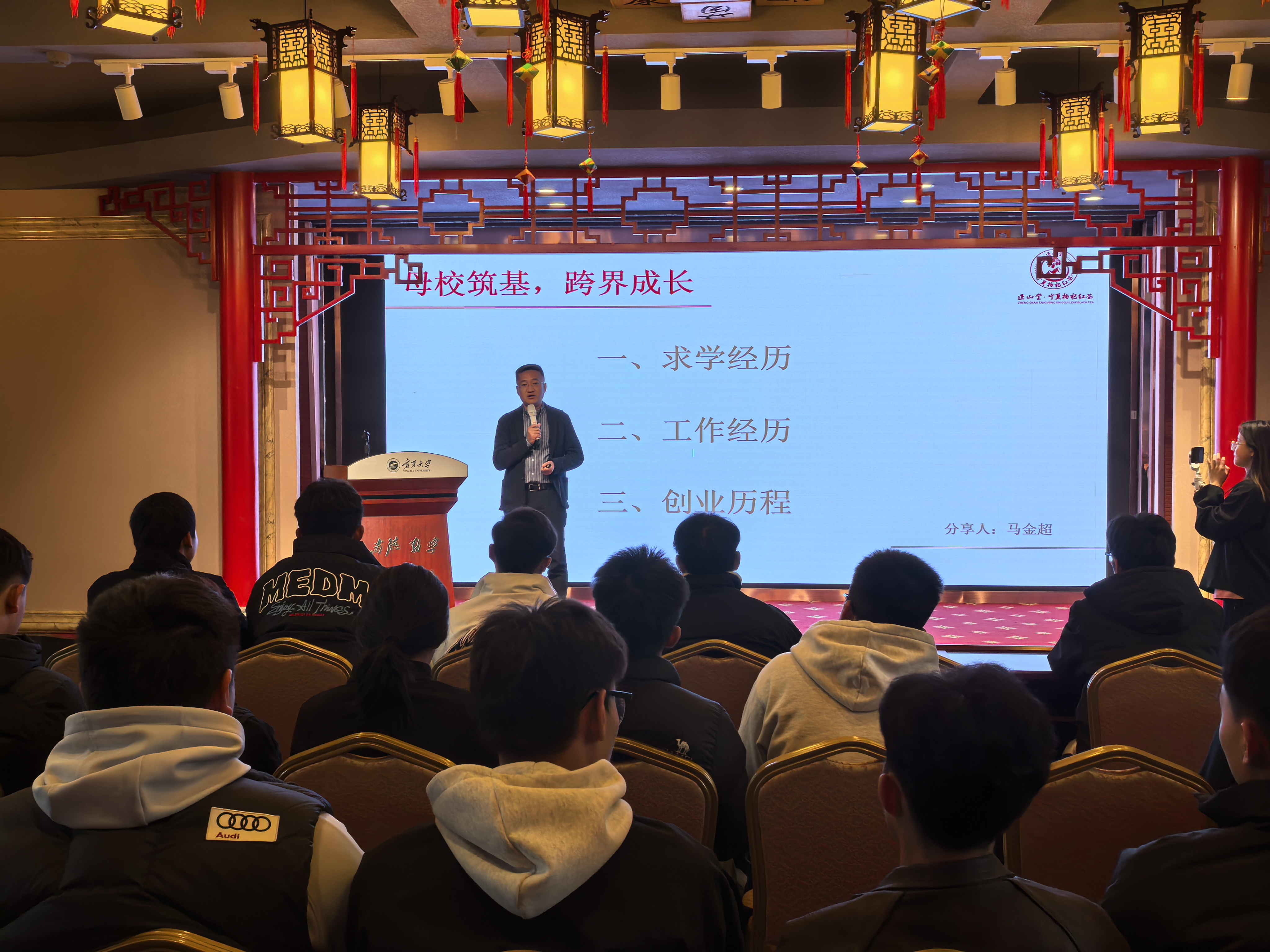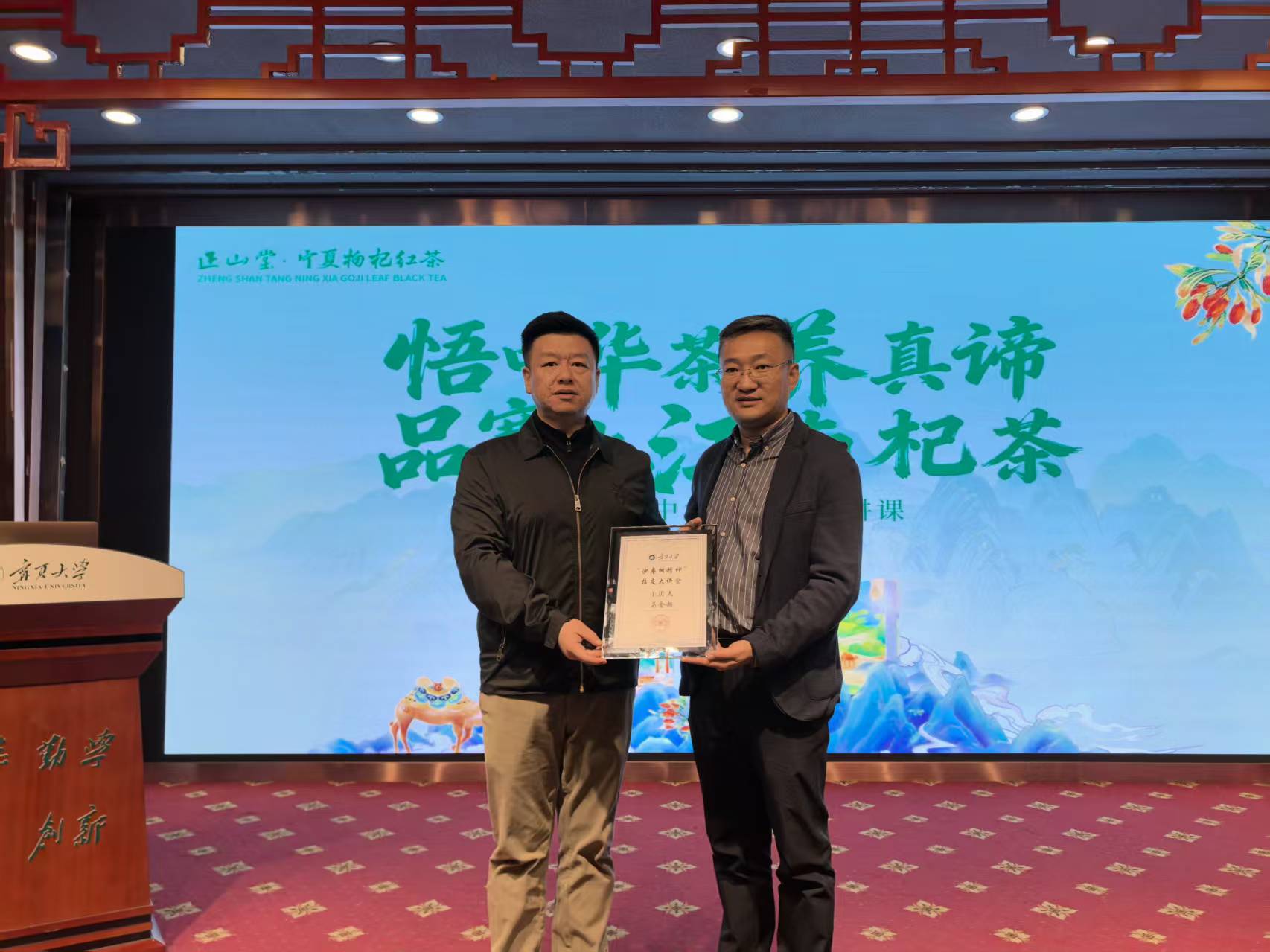 10月29日,一场别开生面、茶香四溢的文化盛宴在宁夏大学上演。2002级工商管理专业校友、宁夏正山堂生物科技有限责任公司总经理马金超受邀重返母校,做客“沙枣树精神”校友大讲堂,与在校师生分享了他的创业故事与品牌理念,并携手专业团队带来了一场深入浅出的中国红茶文化与品鉴之旅。校友总会与教育发展基金会工作办公室主任衡亮主持了报告会。
