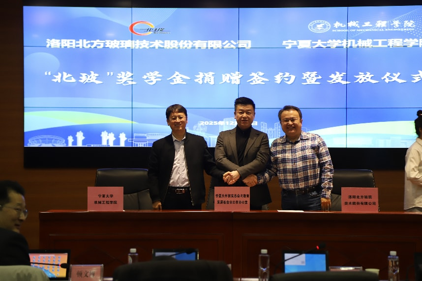 12月10日,洛阳北方玻璃技术股份有限公司(以下简称“北玻股份”)与机械工程学院在贺兰山校区致远楼联合举办校企合作系列活动。本次活动通过座谈签约、奖学金颁发、企业宣讲及毕业生面试等环节,构建“育人-就业”一体化协同平台,全面助力机械工程学院高素质人才培养。