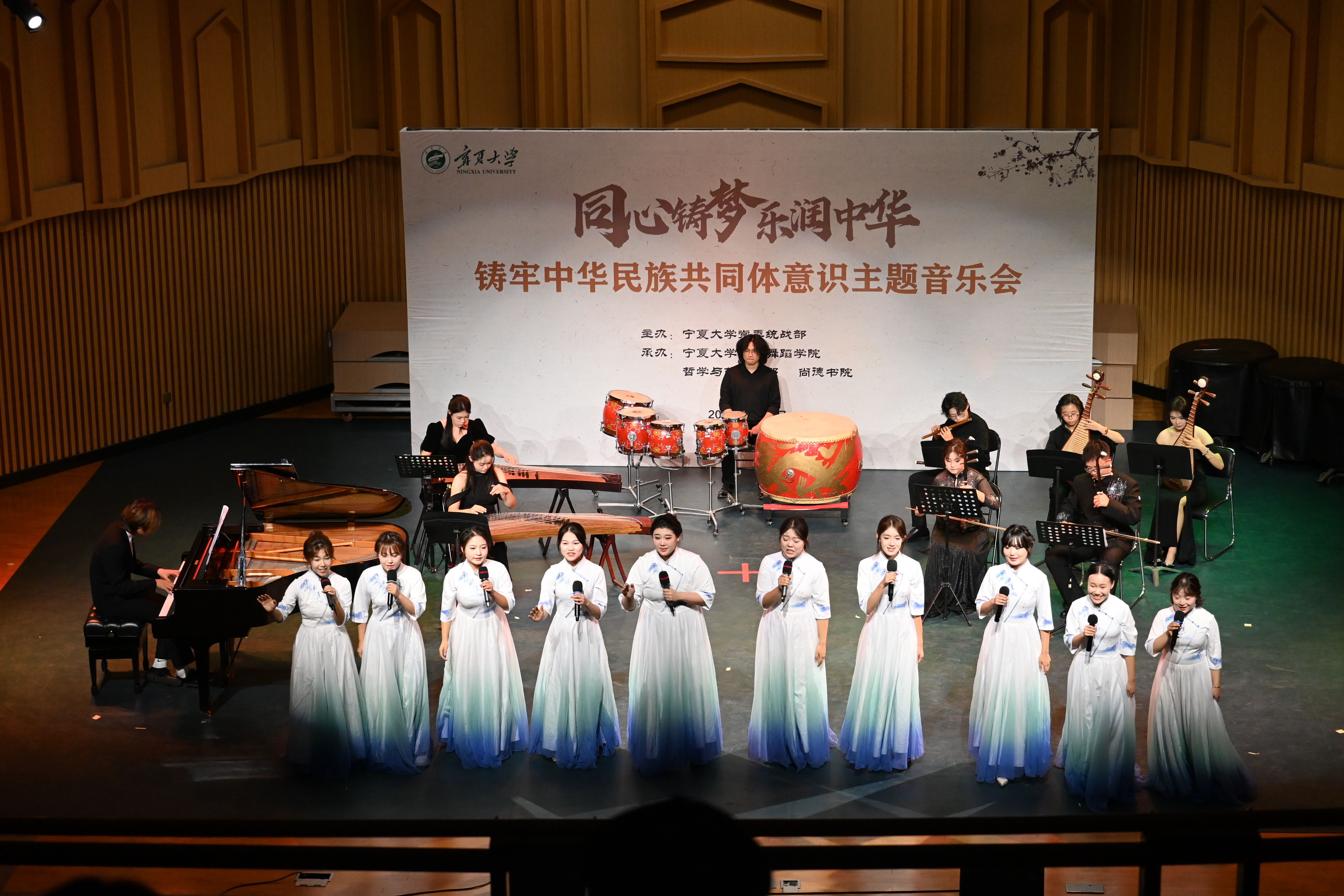 宁夏大学中华民族共同体教育基地正式揭牌,以“五个共同”的中华民族历史观为指导,以促进各民族交往交流交融为目的,借助创新理论、生动案例、文化符号、数字技术及珍贵文物档案,全方位呈现中华民族共同体的形成与发展历程、党的民族理论政策实践成果、宁夏各民族交往交流交融脉络,以及宁夏建设示范区的成效经验和学校在相关领域的教学科研成果,为宁夏各高校和全区常态化开展“铸牢”教育提供新阵地。铸牢中华民族共同体意识美术作品展、铸牢中华民族共同体意识主题音乐会探索创新宣传教育路径和方法,在“美美与共”“同心筑梦”中彰显艺术在促进民族团结进步中的独特魅力。协办宁夏高校《中华民族共同体概论》课程培训,通过政策解读、专家辅导、展示交流、实践教学观摩等环节,为授课教师提升教学水平搭建学习交流平台,推动课程建设再上新台阶。